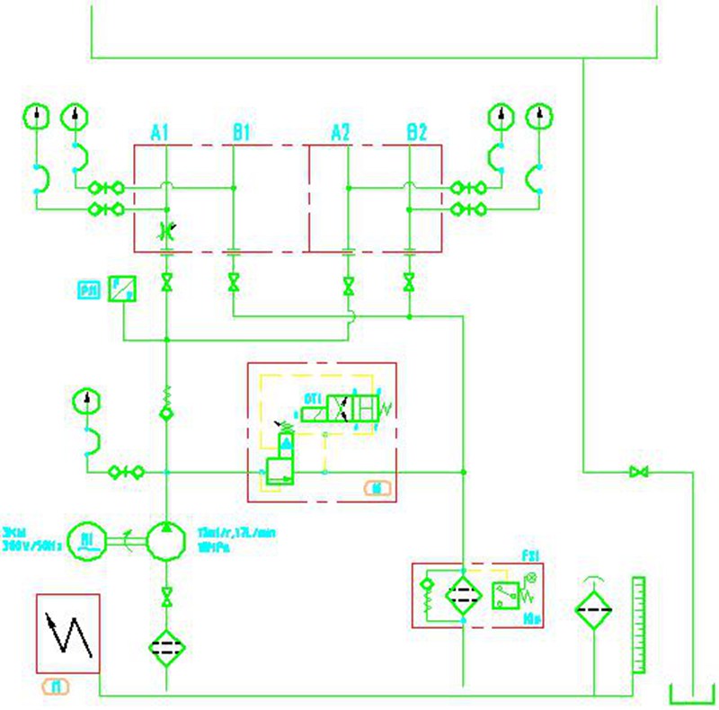 這里我找一個液壓試驗臺的原理設計過程來為大家列舉液壓原理圖的一般設計流程,來拋磚引玉,希望對大家學習液壓知識有所幫助。在這里我先說明一點,液壓系統原理圖設計方法不是僅僅局限于我所列舉的實例,各個行業不能一概而論,我所舉得例子只是一般的設計方法,大家只能參考一下,實際工作中遇到的具體問題還要具體分析。